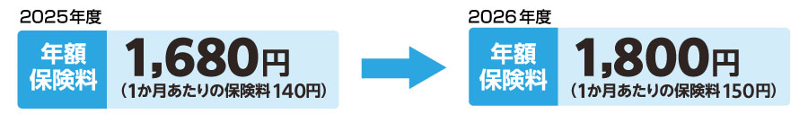 2026年4月1日以降に保険期間が開始するご契約(継続契約を含む)について、物価の上昇や高額な賠償事故の増加を踏まえ年額保険料を1,680円から1,800円に改定を行っています。